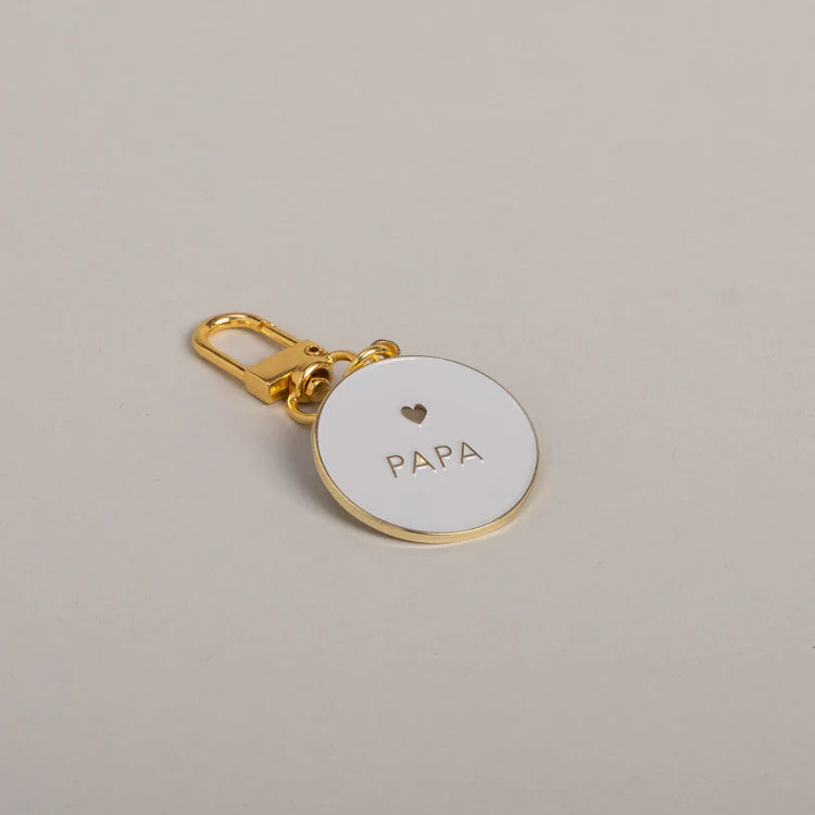 De sleutelhanger is afgewerkt met een zacht roze geëmailleerd ontwerp, gouden letters mama of papa en een klein hartje als verfijnd detail. Minimalistisch, maar vol gevoel. Perfect om aan je sleutelbos, handtas of luiertas te hangen, een dagelijkse reminder van wie je bent, of voor wie je het cadeau kreeg.