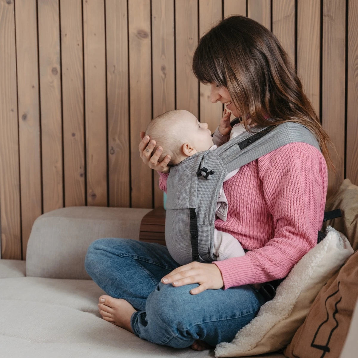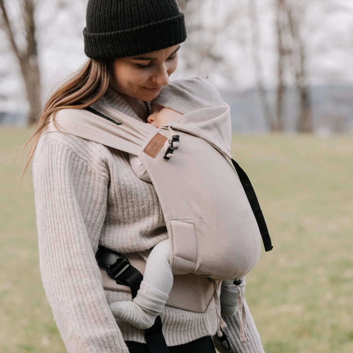 De Primeo is ideaal voor beginnende dragers: je stelt de draagzak vooraf in, laat je kindje erin glijden en trekt aan. Dat geeft extra vertrouwen en verlaagt de drempel om te beginnen met dragen. Handige markeringen op de banden maken het eenvoudig om van drager te wisselen.