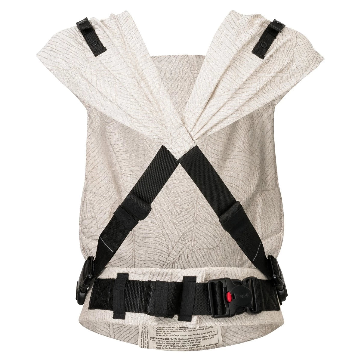 Het rugpand is eenvoudig aan te passen in breedte en lengte, zodat je baby altijd goed ondersteund wordt van knie tot knie. Dankzij het zachte en ademende jacquardweefsel van biologische katoen en linnen, voelt de stof soepel aan op je huid én die van je kindje. De ongeverfde, natuurlijke kleur benadrukt het pure, organische karakter van deze drager en maakt hem bijzonder geschikt voor gevoelige babyhuidjes.