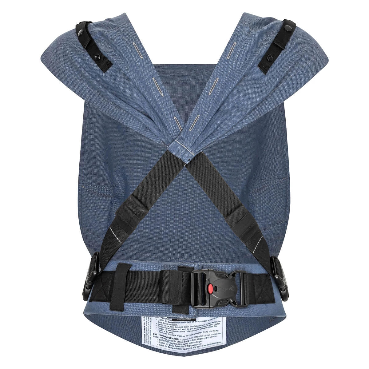 De Hoppediz Primeo is een volledig verstelbare, gebruiksvriendelijke draagzak die je vanaf de geboorte kunt gebruiken, zelfs bij prematuur geboren kindjes. Deze draagzak combineert het beste van twee werelden: het gemak van een klikdrager en het comfort van een geweven draagdoek. De schouderbanden zijn breed uitspreidbaar en kruisen op de rug, wat zorgt voor een optimale gewichtsverdeling over de stevige delen van je lichaam en niet op je nekspieren. Hierdoor draag je comfortabel, ook bij langdurig gebruik.