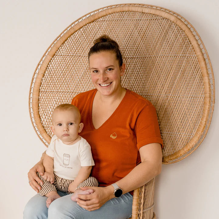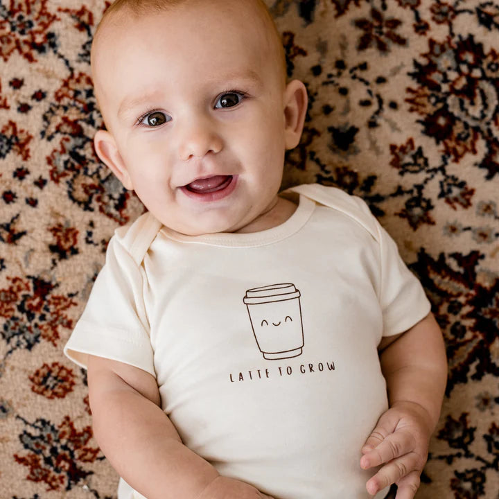 De beige babybody Latte to grow van het Belgische merk Latte Mamiato is niet alleen zacht en comfortabel, maar ook de perfecte manier om te matchen met je kleintje. Verkrijgbaar in maat 0-3 maanden en 3-6 maanden, gemaakt van 100% organisch katoen dat heerlijk ademend en lief is voor de gevoelige babyhuid. De subtiele zeefdruk in plaats van borduurwerk voorkomt irritatie, terwijl de handige drukknopjes verschonen supersnel maken. De neutrale beige tint combineert moeiteloos met alles, en matcht perfect met de borstvoedingst-shirts en -sweaters van hetzelfde merk. Zo straal je samen stijl en comfort uit, van eerste kopje latte tot laatste avondknuffel.