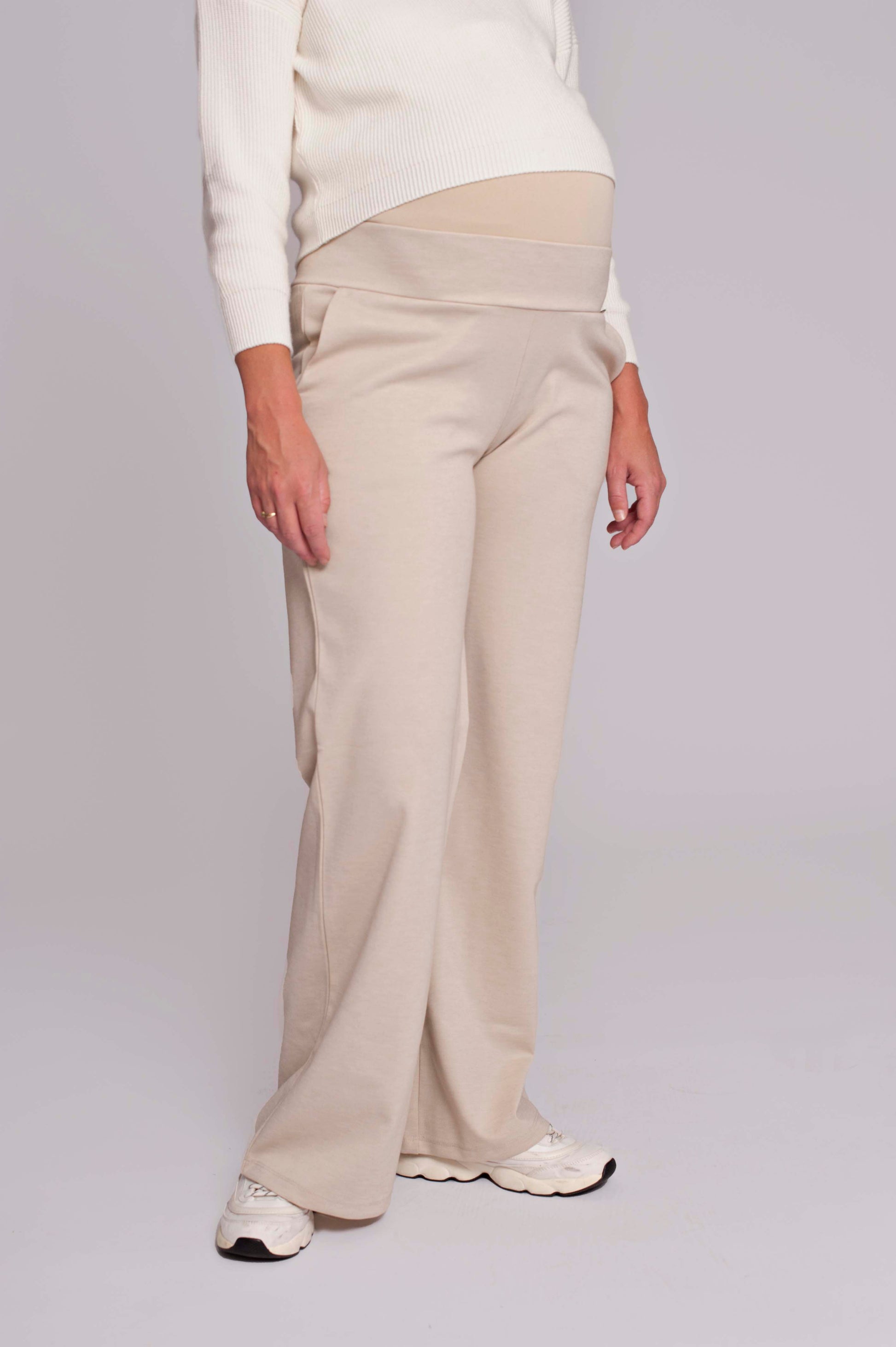 De Pants Wide Leg biedt het beste van twee werelden: het comfort van een zwangerschapsbroek en de uitstraling van een geklede pantalon. Dankzij de elastische tailleband blijft de broek perfect zitten zonder af te zakken, terwijl de zachte buikband je buik ondersteunt zonder te knellen.