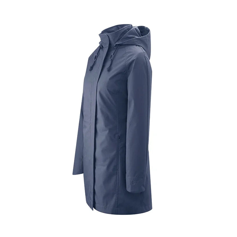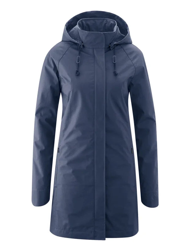 Buitenjas: 60% biologisch katoen, 40% gerecycled polyester FC-vrije Bionic Finish Eco impregnatie Wind- en waterdicht PU-membraan (7.000 mm waterkolom) Binnenvoering: 100% biologisch katoen Uitneembare voering: 100% gerecycled polyester Vegan, gewatteerde polyester vulling